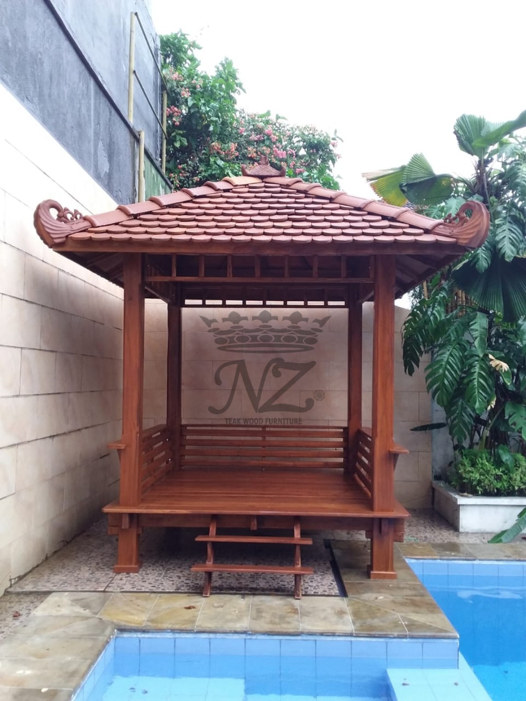 Mencari gasebo atau gazebo untuk interior taman atau halaman rumah Anda? Pilih dari berbagai macam gazebo produk NZ Furniture Jepara, Gasebo adalah salah satu fasilitas dengan ruang-ruang terbuka sebagai alternatif tempat berkumpul dan melakukan kegiatan santai bersama anggota keluarga lainnya, banyak juga yang menyebut saung karena digunakan untuk tempat santai. Kuncinya adalah suasana alami, keakraban, kenyamanan dan keindahan.