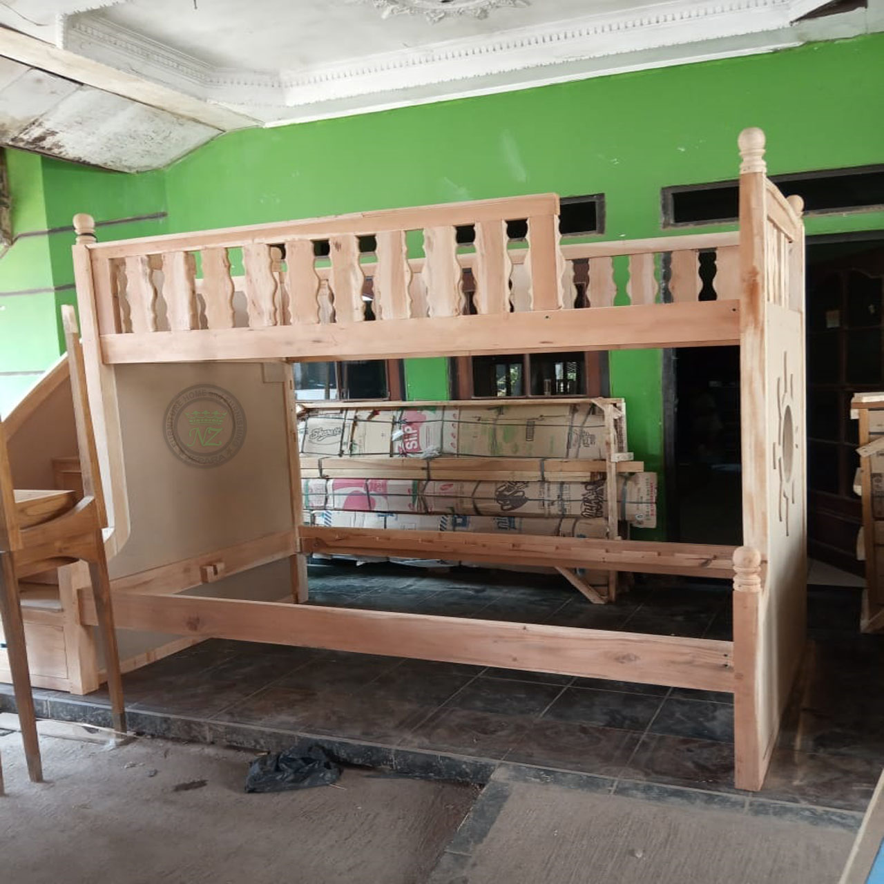 Koleksi NZ-Furniture adalah solusi sempurna untuk kamar tidur anak. Platform dan tempat tidur susun terbuat dari bingkai kayu solid mahoni dan MDF, dengan desain penyimpanan yang ekstra. Tempat tidur bisa digunakan untuk tiga tempat tidur.