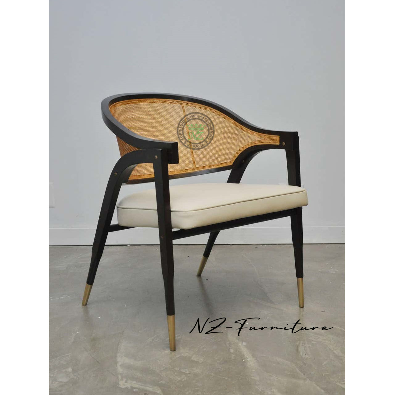 Nikmati kenyamanan maksimal dengan kursi santai modern ini. Desain elegan dengan kombinasi rangka kayu hitam yang kokoh dan anyaman rotan yang natural memberikan nuansa hangat di ruangan Anda. Bantalan empuk berlapis kain berkualitas tinggi menjamin kenyamanan saat bersantai. Sempurna untuk melengkapi ruang tamu atau sudut baca favorit Anda.
