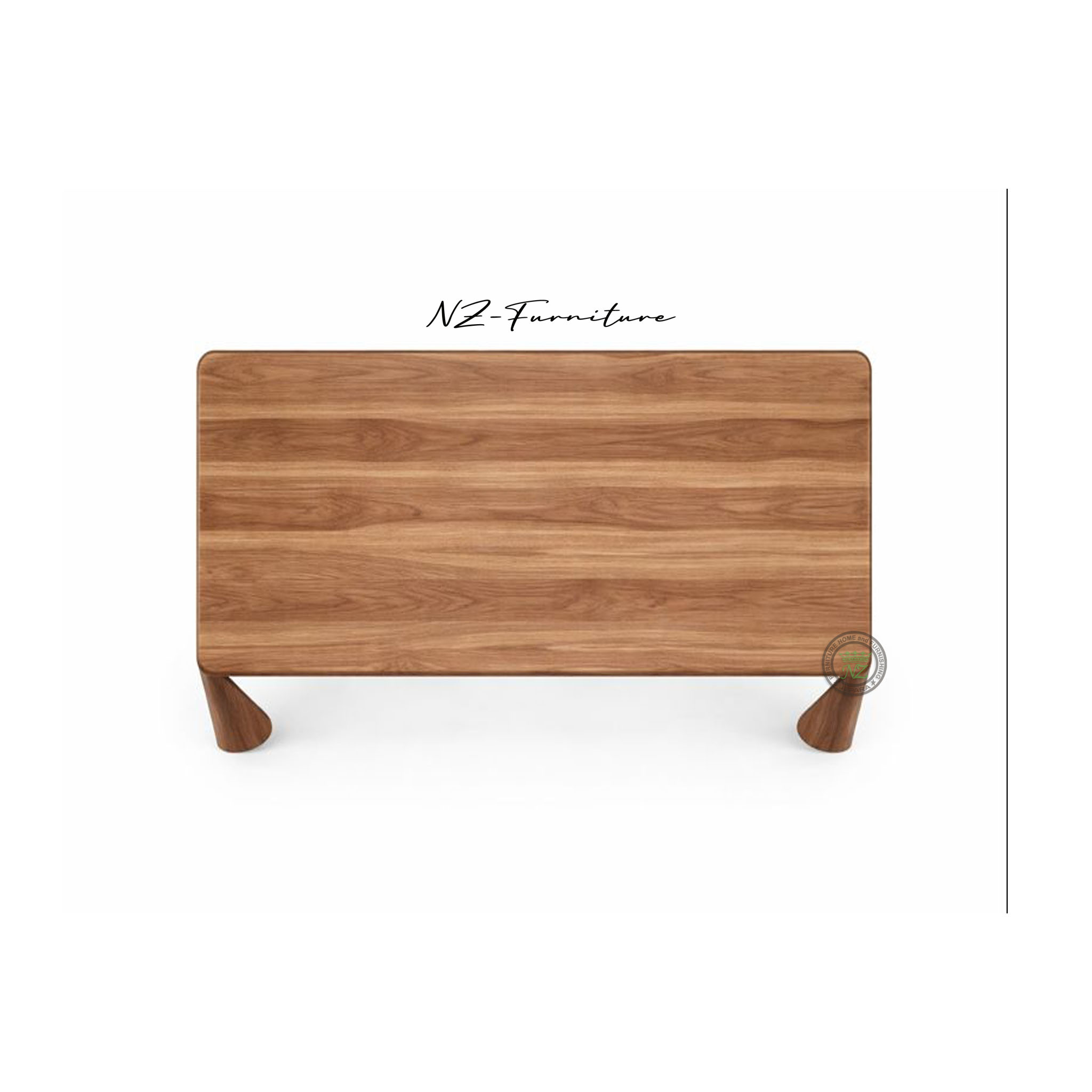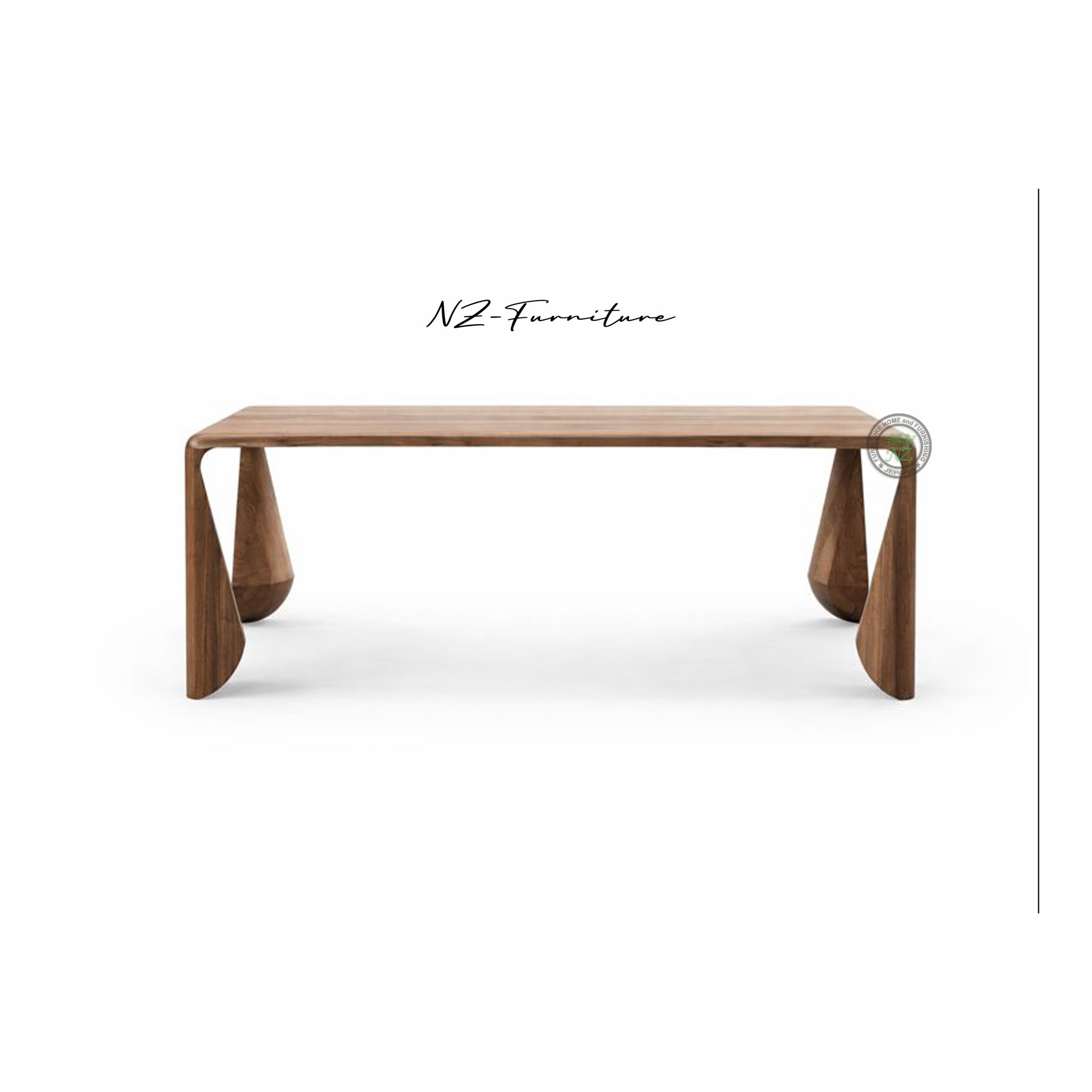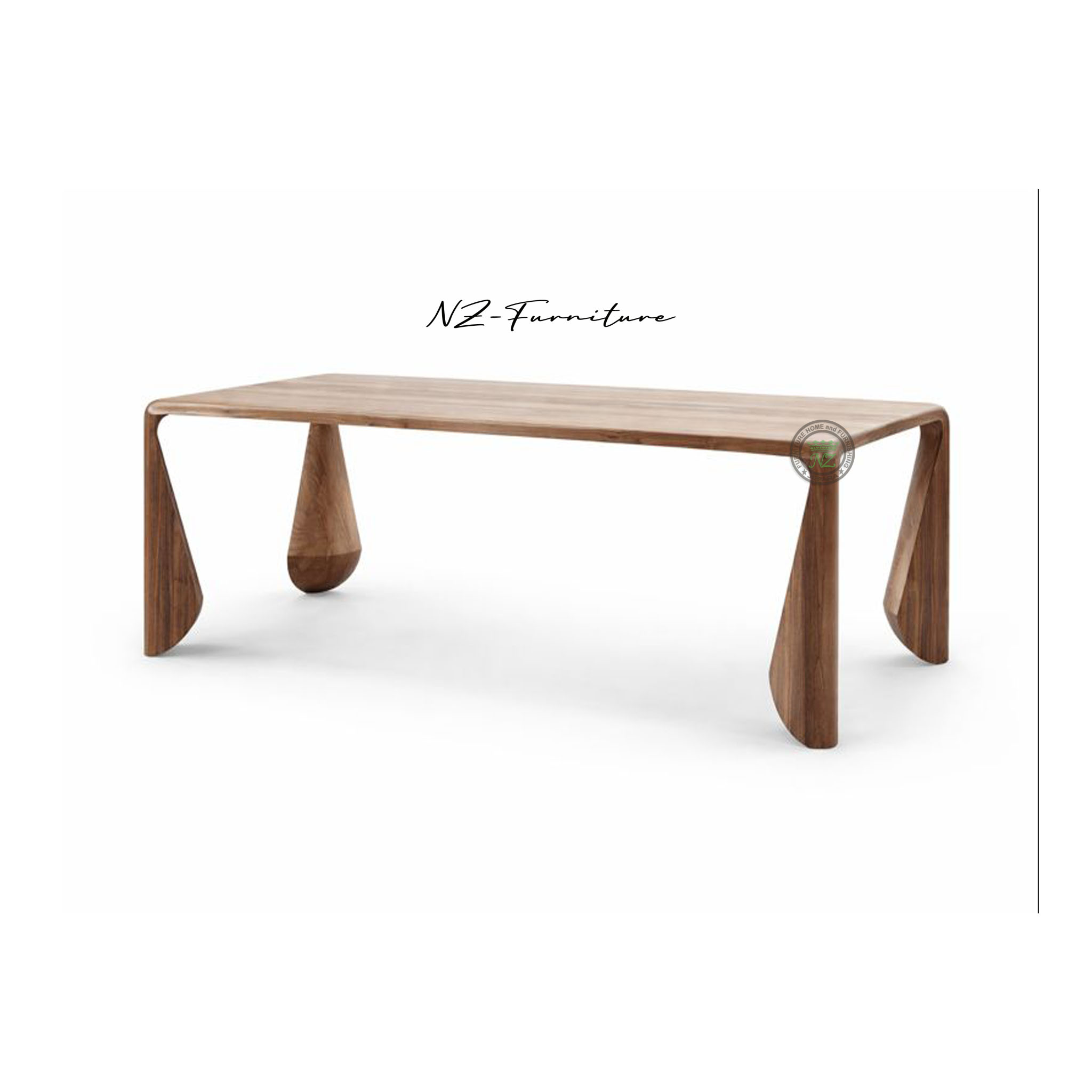 Meja kayu solid dengan desain modern dan kaki artistik yang memberikan kesan elegan, kokoh, dan eksklusif. Meja makan kayu solid modern dibuat oleh pengrajin berpengalaman dengan perhatian penuh pada detail, sehingga menghasilkan meja berkualitas tinggi untuk penggunaan jangka panjang.