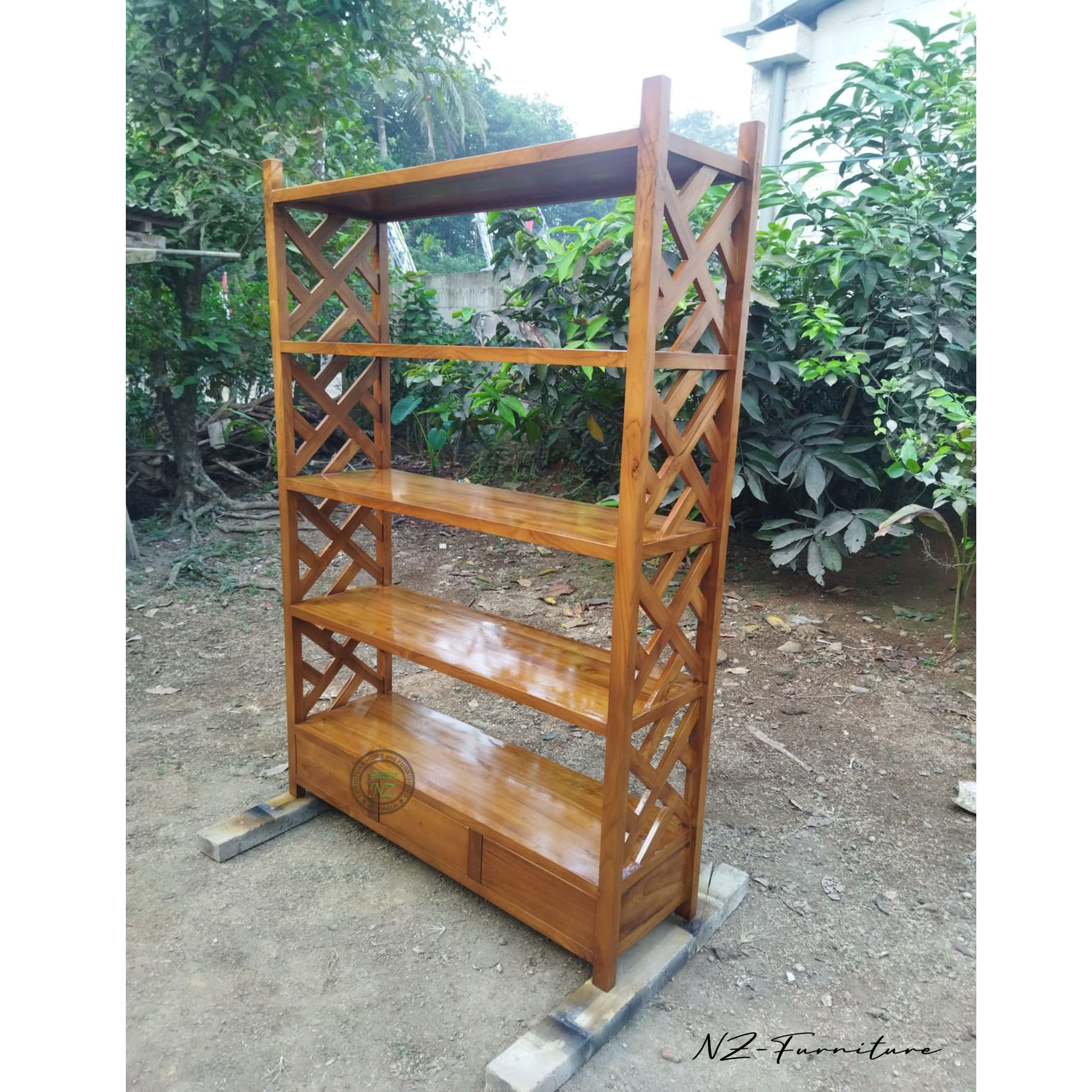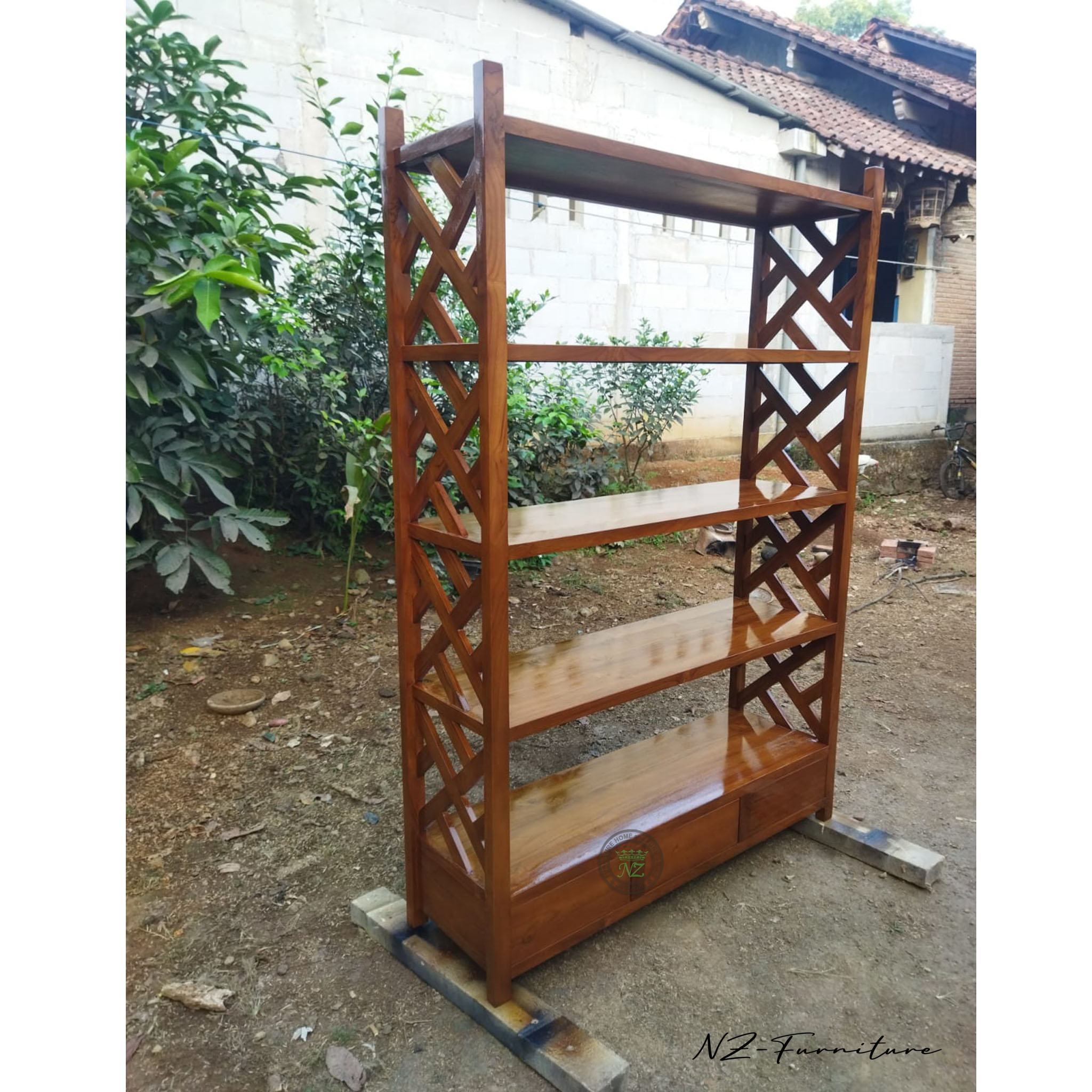 Rak Buku Jati Solid