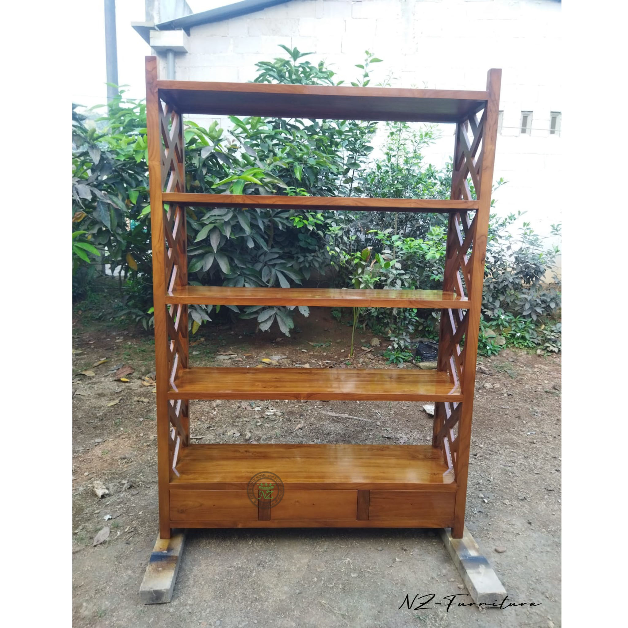 Hadirlah Rak Buku Jati Solid kami, sebuah statement piece yang tidak hanya menawarkan ruang penyimpanan luas, tetapi juga meningkatkan keindahan interior rumah Anda. Dibuat dari Kayu Jati Pilihan (Teak Wood), rak ini menjamin kekokohan, durabilitas, dan ketahanan yang legendaris dari kayu jati, menjadikannya investasi furnitur jangka panjang.