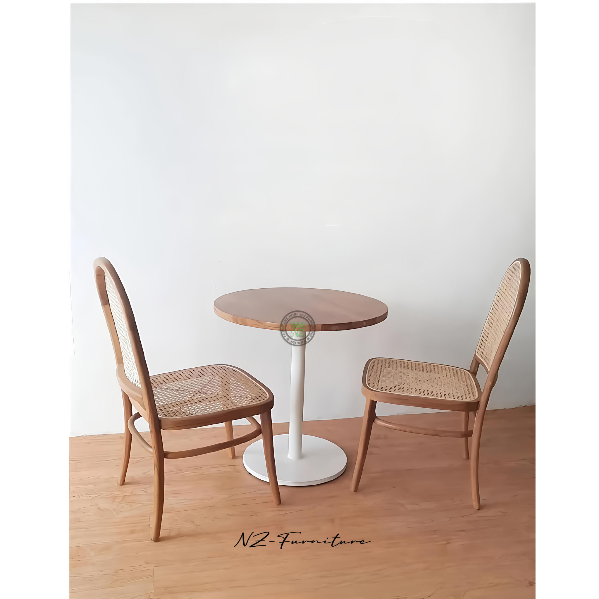 Hadirkan nuansa estetik dan nyaman pada ruang usaha atau rumah Anda! Set meja kursi cafe ini menggabungkan material kayu jati berkualitas tinggi dengan anyaman rotan alami pada bagian sandaran dan dudukan. Desainnya yang timeless sangat cocok untuk cafe bergaya Scandinavian, Japandi, maupun minimalis modern.