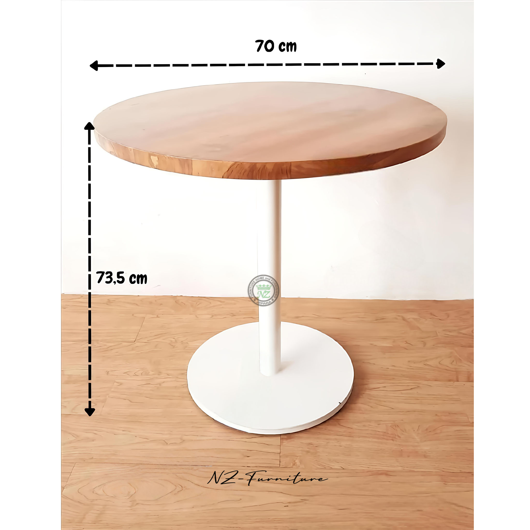• Meja Kokoh: Meja bundar rangka besi dengan finishing halus yang mudah dibersihkan.