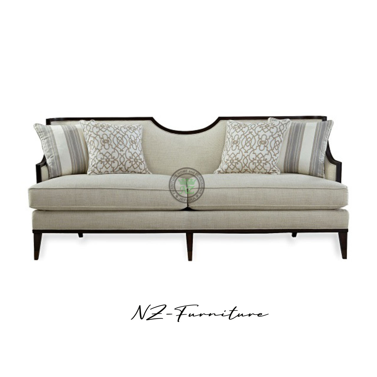 Warna cat finishing sofa harper pada gambar display di atas memakai warna duco menampilkan kesan elegan dan warna kain linen menambah kesan nuansa pedesaan yang hangat.
